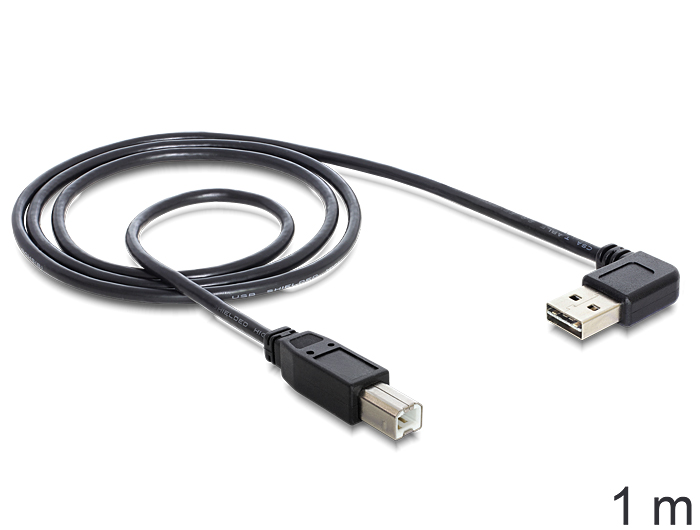 Anschlusskabel USB 2.0 EASY Stecker A an Stecker B, gewinkelt, schwarz, 1m, Delock® [83374]