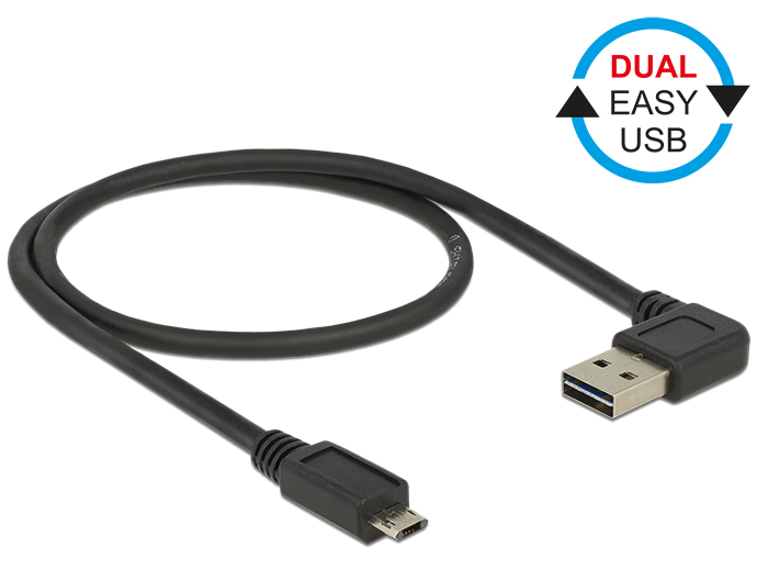 Kabel EASY-USB 2.0 Typ-A Stecker gewinkelt links / rechts an EASY-USB 2.0 Typ Micro-B Stecker, schwarz, 0,5 m, Delock® [85164]