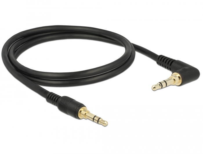 Klinkenkabel 3,5 mm 3 Pin Stecker an Stecker gewinkelt, schwarz, 1m, Delock® [85566]