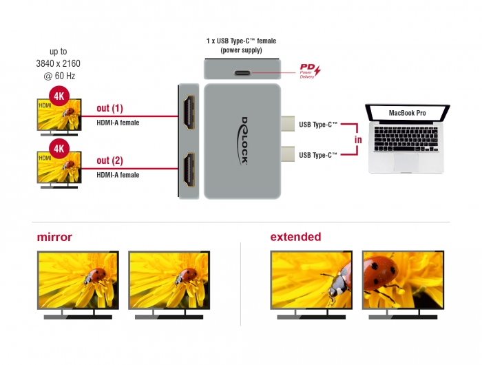 Dual HDMI Adapter mit 4K 60 Hz und PD 3.0 für MacBook, Delock® [64123]