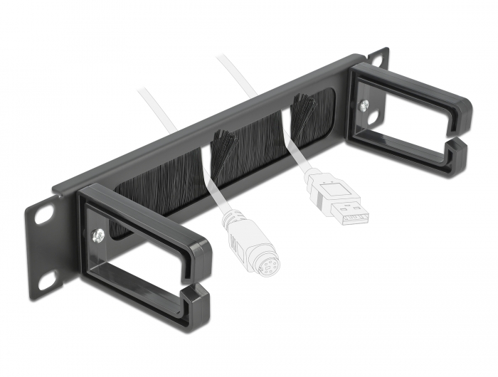 10" Kabelmanagement Bürstenleiste mit 2 Bügeln 1 HE schwarz, Delock® [66485]