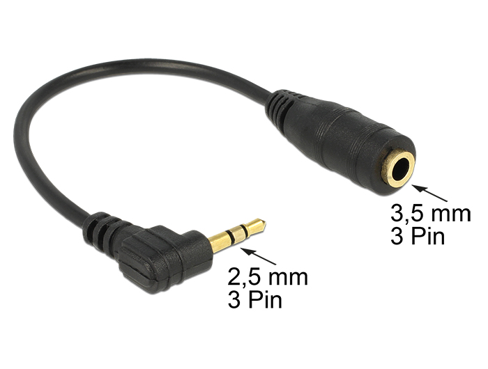 Kabel Audio Klinke 2,5 mm Stecker gewinkelt an 3,5 mm Buchse 3 Pin 14 cm, Delock® [65397]