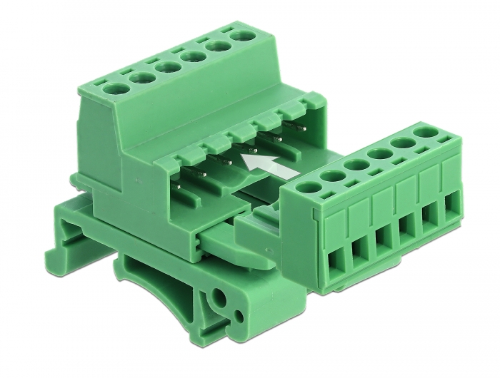 Terminalblock Set für Hutschienen, 6-Pin, mit Rastermaß 5,08mm, gewinkelt, Delock® [66080]