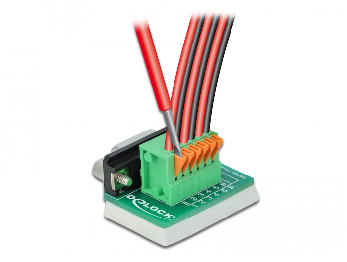 D-Sub9 Buchse zu Terminalblock mit Drucktaster vertikal, Delock® [66556]