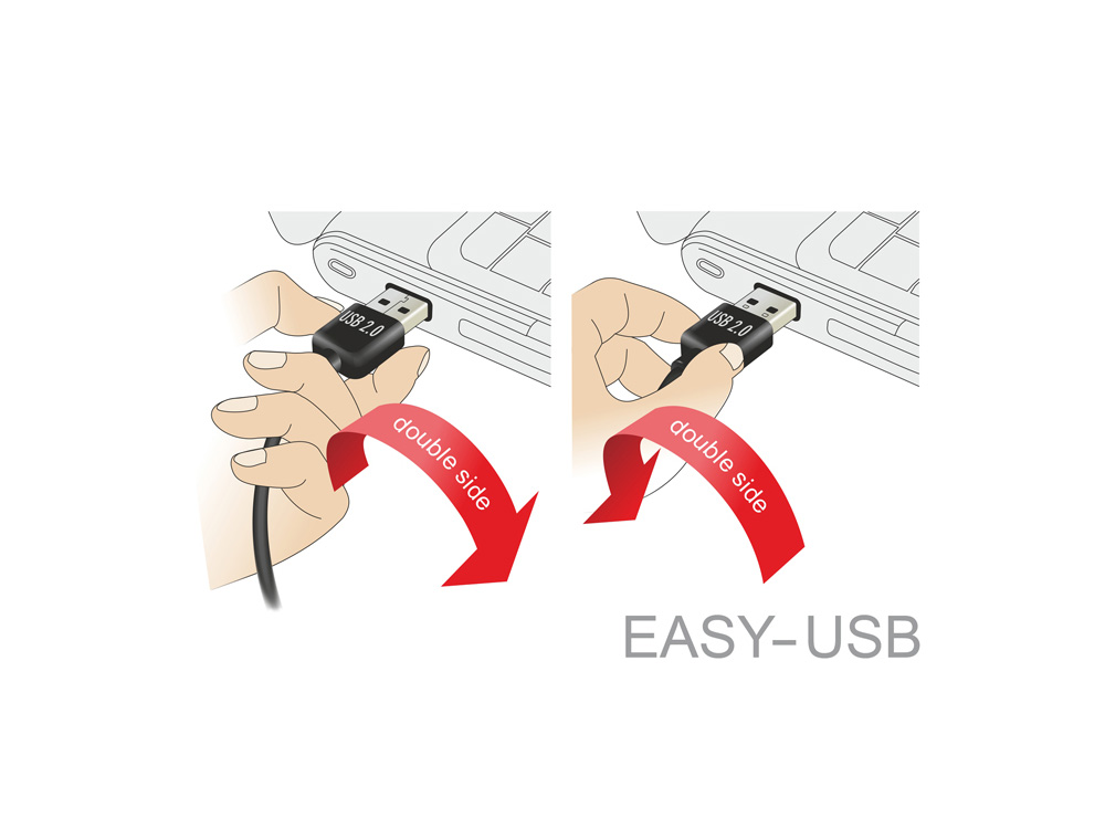 Adapter EASY-USB 2.0 A Stecker an USB 2.0 A Buchse gewinkelt oben / unten, Delock® [65521]