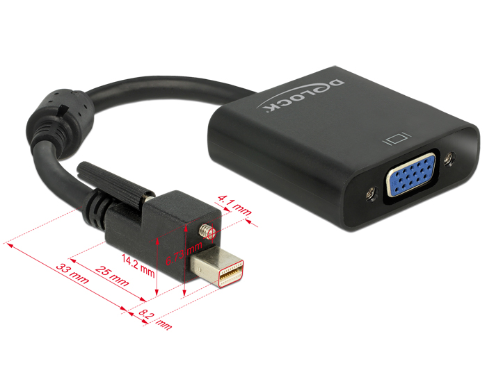 Adapter mini Displayport 1.2 Stecker mit Schraube an VGA Buchse schwarz, Delock® [62641]