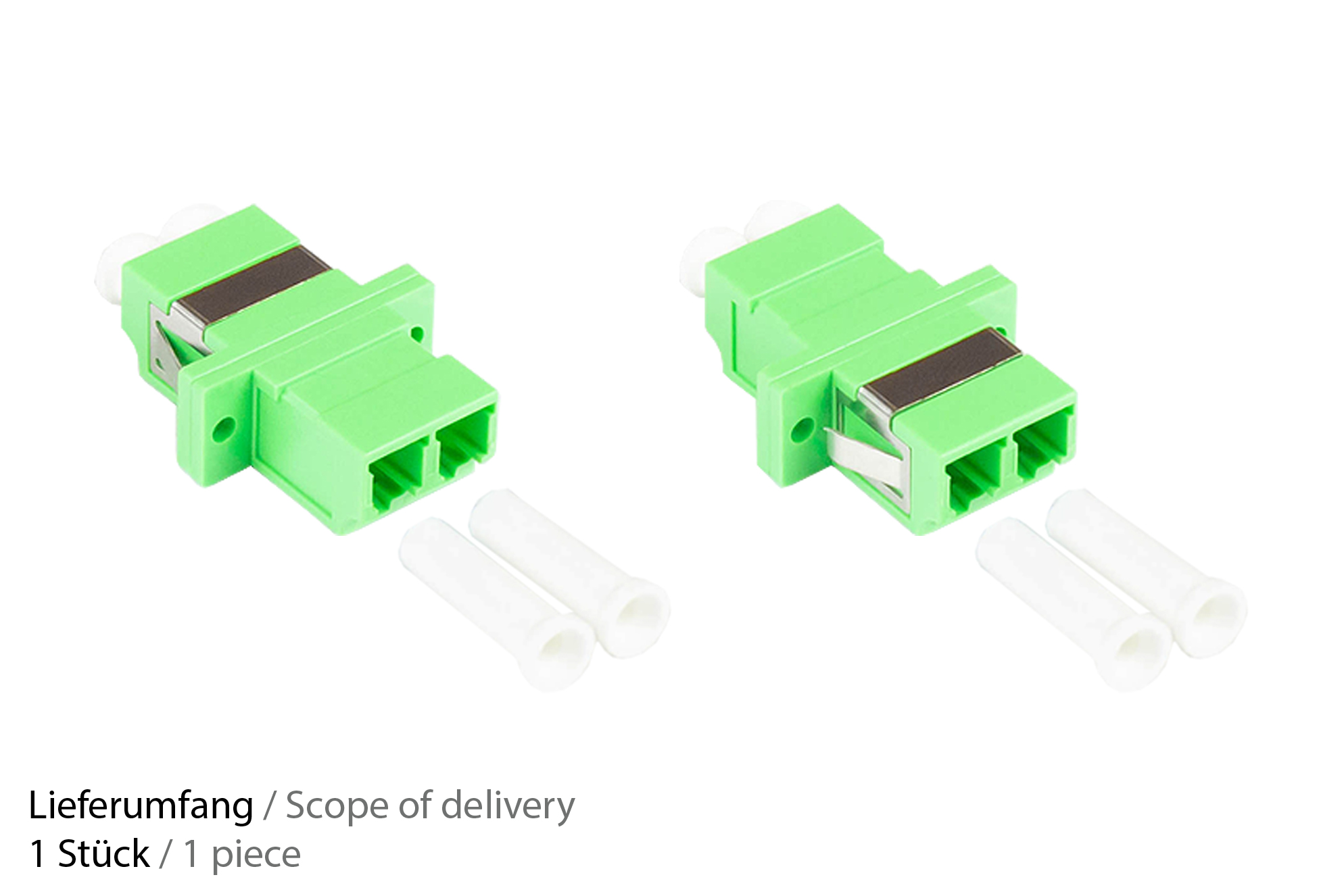 LWL Duplex Kupplung, LC (APC) an LC (APC), OS2, Singlemode, Kunststoffgehäuse mit Flansch, Keramikhülse, grün, Good Connections®