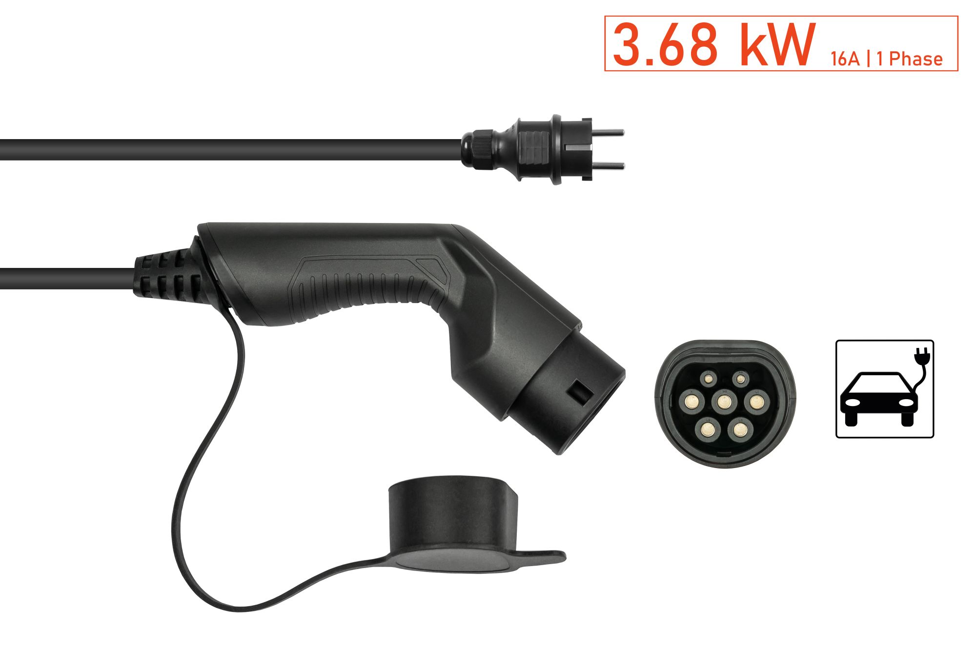 kabelmeister® Typ 2 Ladegerät mit geradem Schutzkontakt-Stecker, für Elektro- u. Hybridfahrzeuge, 3,6kW, schwarz, 5m
