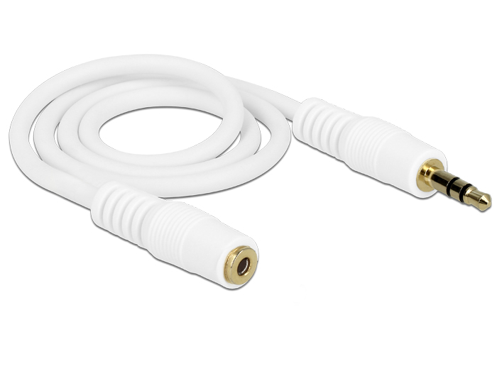 Klinkenverlängerungskabel 3,5 mm 3 Pin Stecker an Buchse 0,5 m weiß, Delock® [83763]