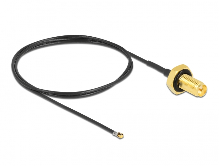 Antennenkabel RP-SMA Buchse zum Einbau zu MHF® 4L LK Stecker 1.37 50 cm Gewindelänge 10 mm spritzwassergeschützt, Delock® [12661]