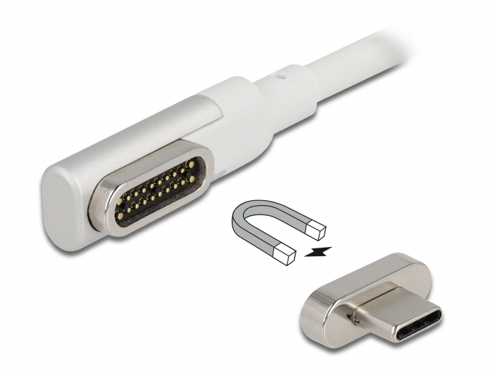 Dieses magnetische Kabel von Delock eignet sich zum Anschluss von z. B. Smartphones, iPads, Speichermedien etc. mit USB-C™ Schnittstelle an Systeme mit Thunderbolt™ 3 Port. Der dazugehörige USB-C™ Magnetadapter ist so konzipiert, dass er in der Buchse des Gerätes verbleiben kann und den Verschleiß an der Buchse verhindert sowie als Staubschutz dient. Bei Bedarf kann das Kabel mit der magnetischen Seite jederzeit mit dem Adapter verbunden werden. Zusätzlich kann durch die abgewinkelte Form, die USB Type-C™ Buchse auch an schwer zugänglichen Stellen leichter erreicht werden.