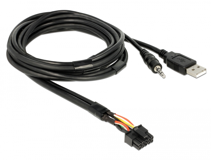 Kabel USB Typ-A St. + 3,5 mm 4 Pin Klinken-St. an Einbaubuchse USB Typ-A Bu. + 3,5 mm 4 Pin Klinken-Bu. (Audio) 1,5 m schwarz, Delock® [85718]