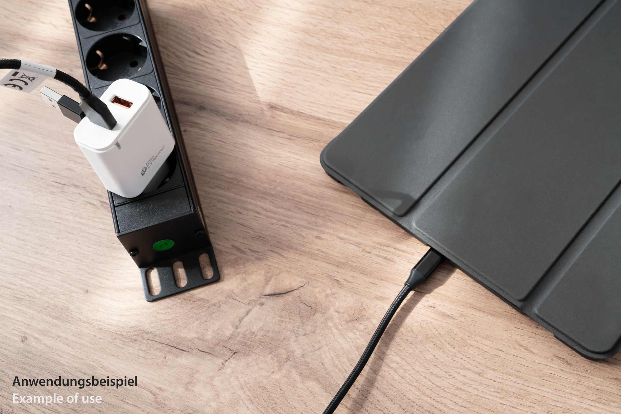 USB 2.0 Lade- und Datenkabel, USB-A und USB-C™ an USB-C™, QC 3.0, PD 60W, Textilmantel, schwarz, 1m, PYTHON® Series