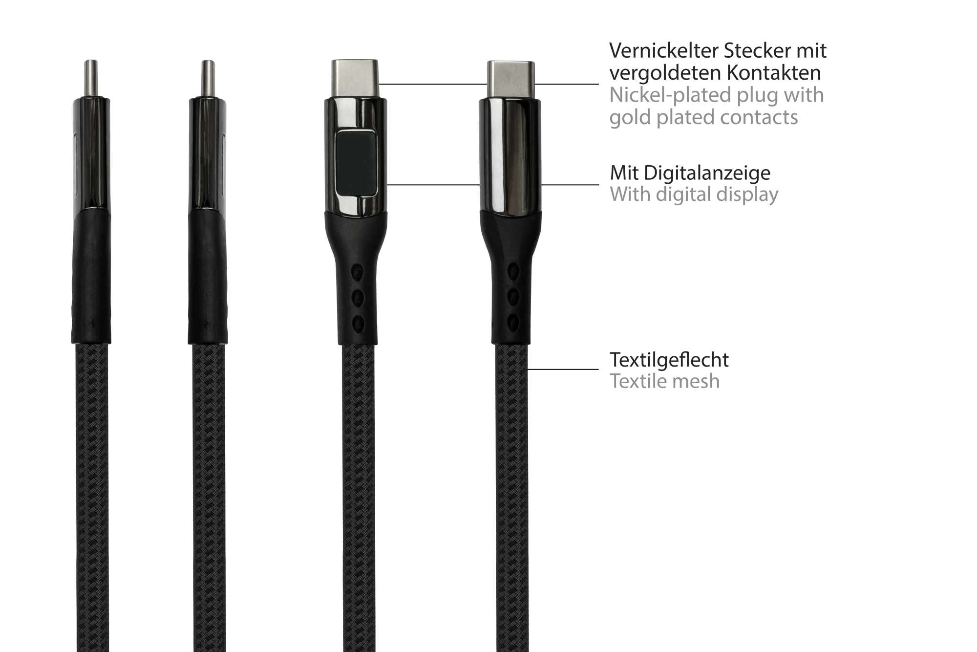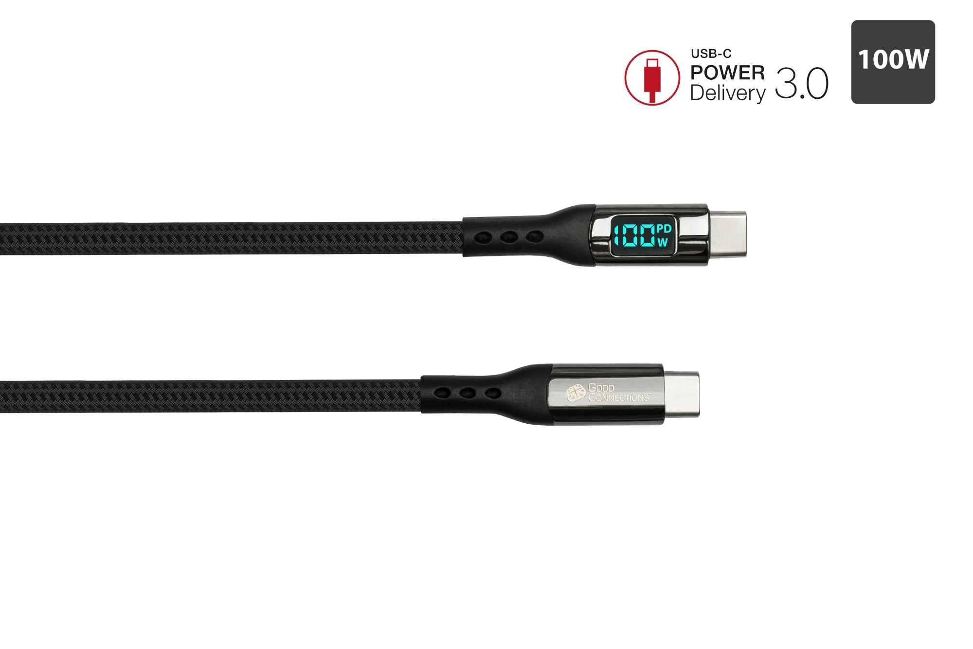 USB 2.0 Lade- und Datenkabel (100W) mit Digitalanzeige, USB-C™ Stecker an USB-C™ Stecker, schwarz, 1m, Good Connections®