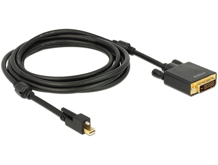 Kabel mini Displayport 1.2 Stecker mit Schraube an DVI Stecker 4K Aktiv schwarz 3m, Delock® [83727]