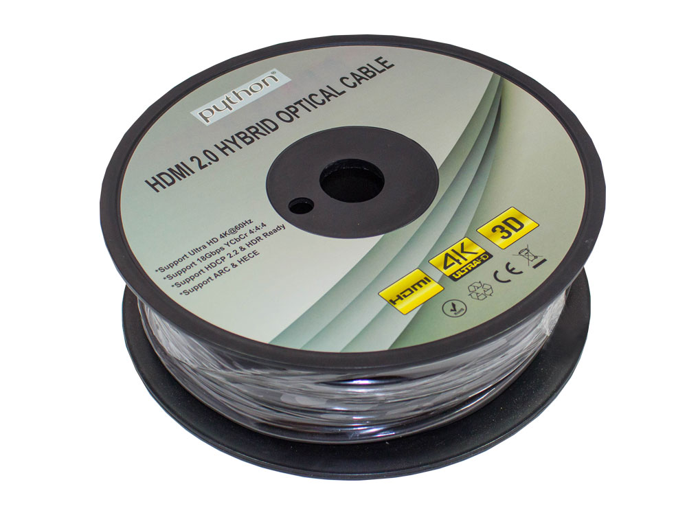 Optisches Hybrid HDMI™ 2.0 Anschlusskabel, 4K2K / UHD 60Hz, vergoldete Stecker und Kupferkontakte, schwarz, 90m, PYTHON® Series