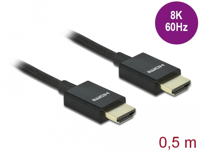 Koaxiales High Speed HDMI Kabel 48 Gbps 8K 60 Hz schwarz 1 m, Delock® [85383]