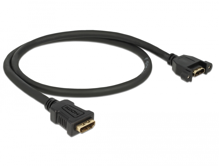 Dieses Kabel von Delock kann zur Verlängerung einer HDMI Verbindung und zum Anschluss diverser Geräte verwendet werden. Die Buchse lässt sich mit zwei Schrauben befestigen, z. B. an einem Slotblech, einem Kabelkanal oder einem Gehäuse mit der entsprechenden Aussparung. Auf diese Weise ist es möglich, eine HDMI Buchse an einer leicht erreichbaren Position zu installieren.