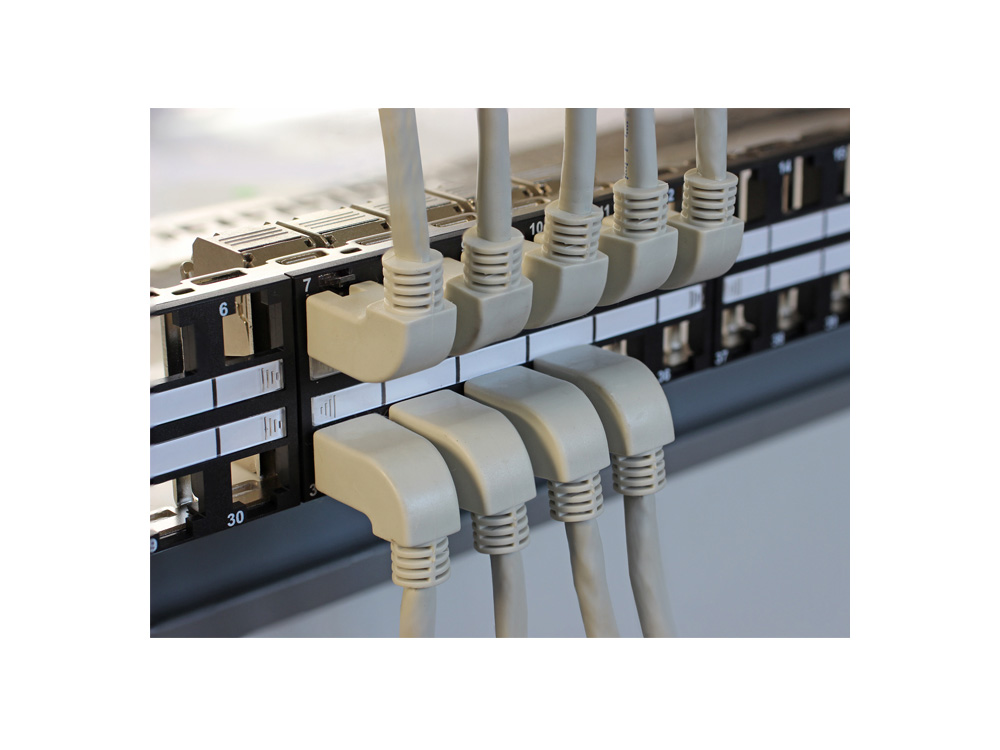 Patchkabel, Cat. 5e, S/FTP, beidseitig 90° nach unten gewinkelt, grau, 1m, Delock® [83511]