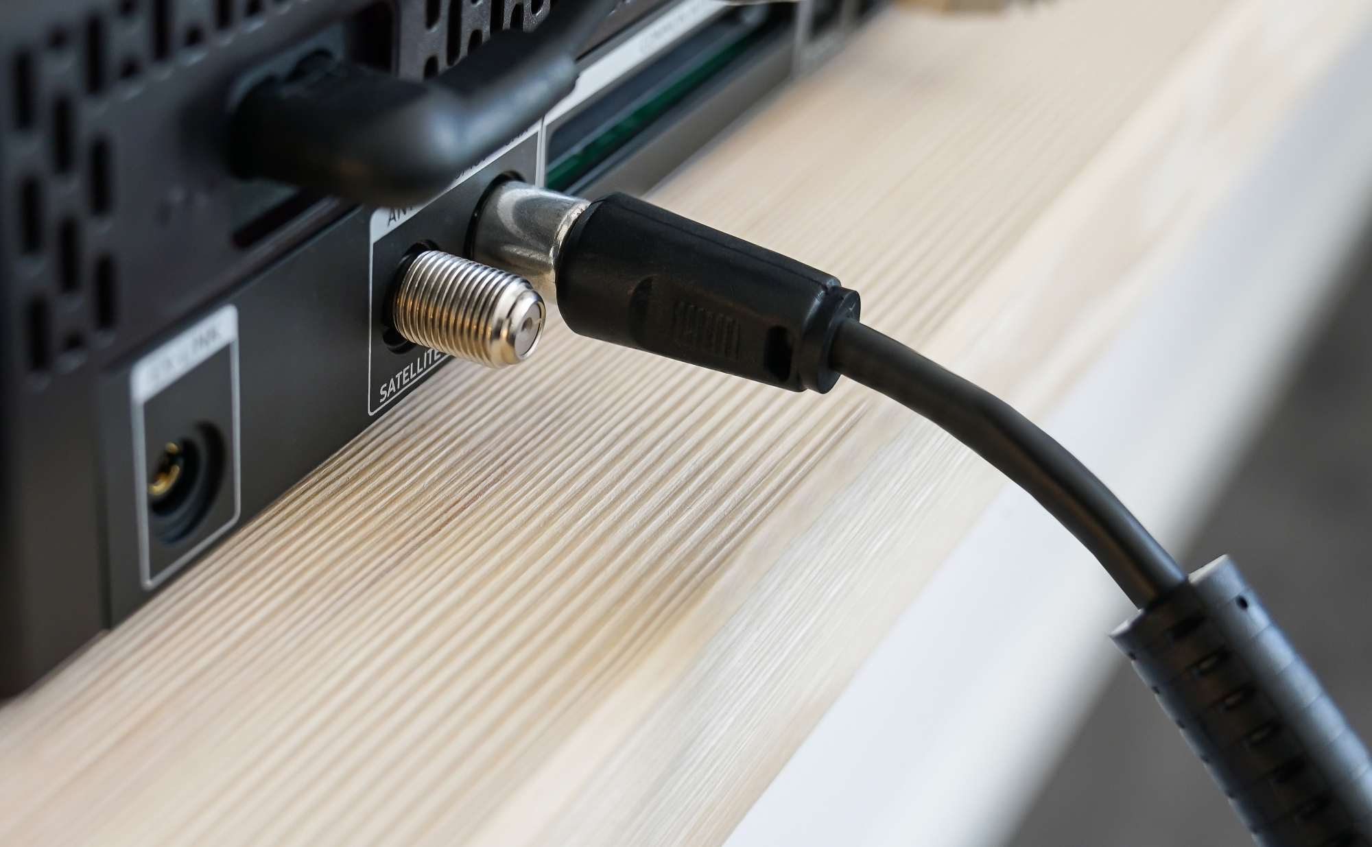 TV Antennenkabel, Koax Stecker an Koax Buchse (vernickelt), 2x Ferritkern, 2x geschirmt, Class A, 95 dB, 75 Ohm, CCS, schwarz, 1m, Good Connections®