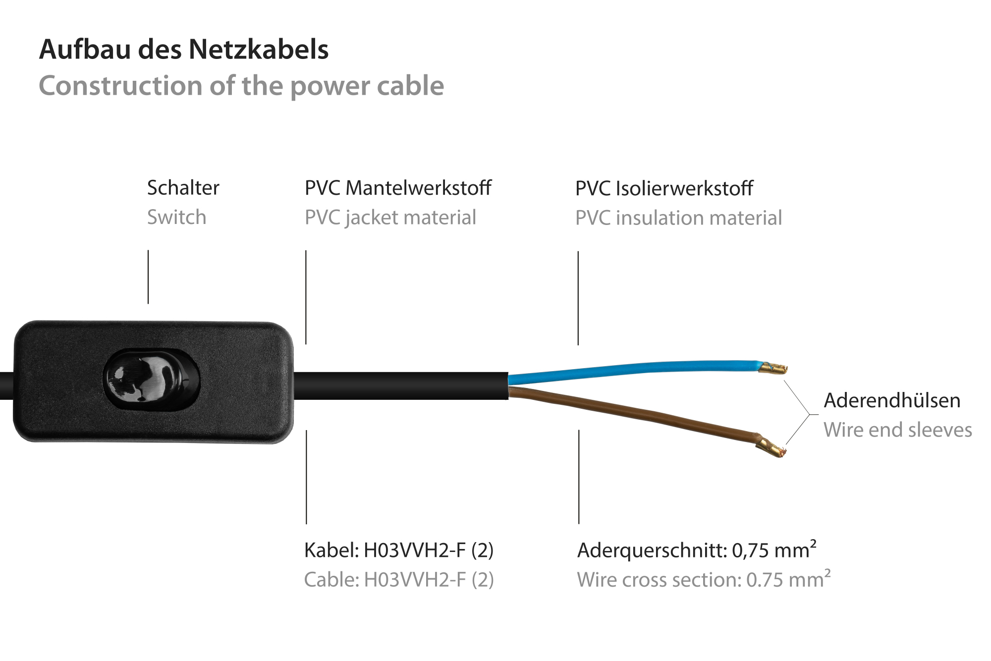 Euro-Netzkabel Leiterquerschnitt: 0,75 mm²