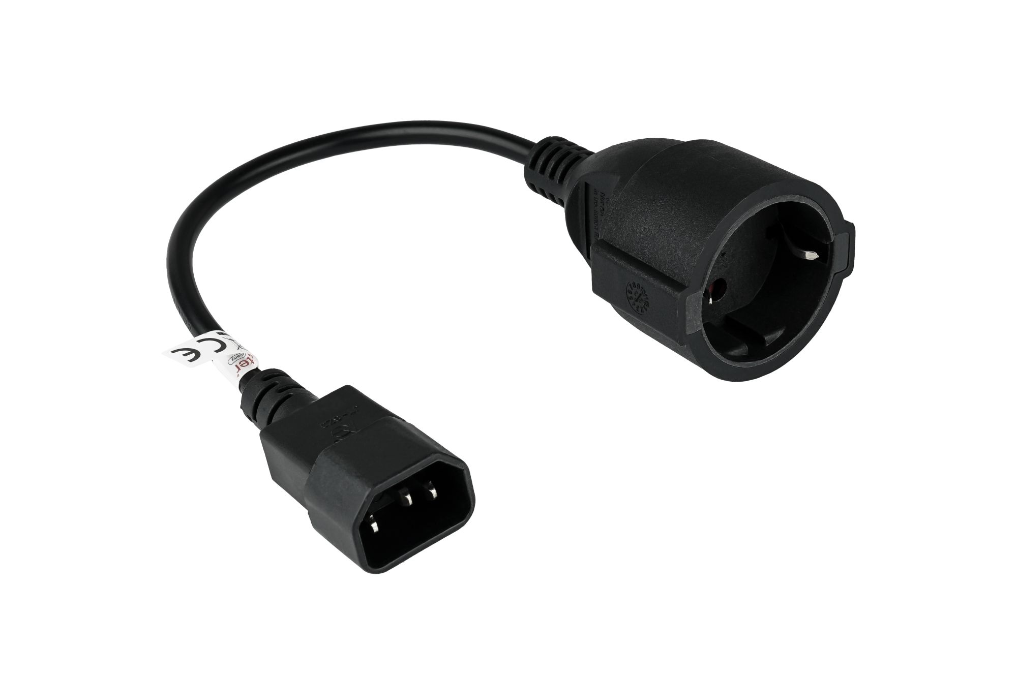 kabelmeister® Netzkabel / Adapterkabel USV, Kaltgeräte-Stecker C14 (gerade) an Schutzkontakt-Buchse Typ F (gerade), schwarz, 0,75mm², 0,15m
