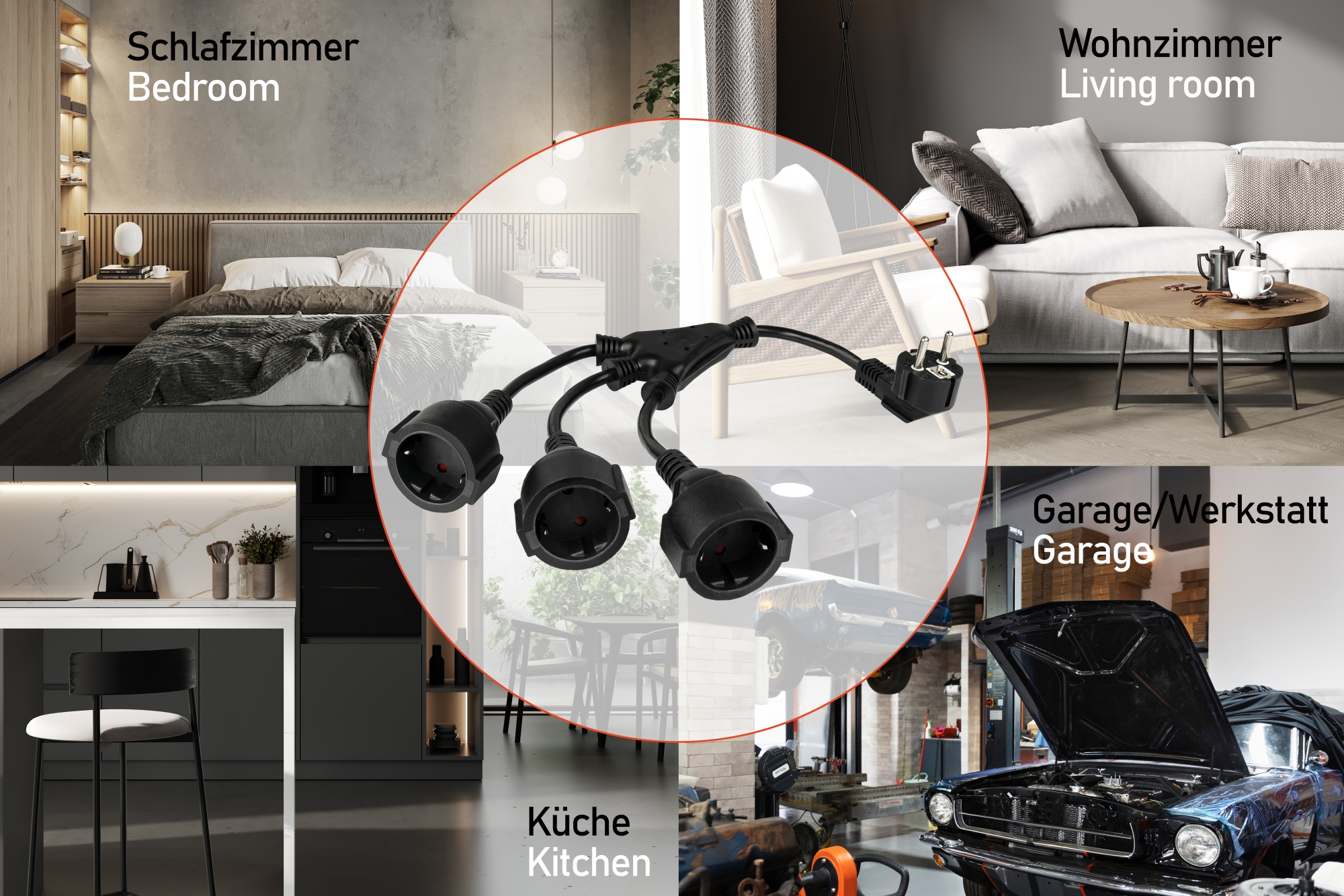 Dreifach Stromverteiler-Kabel für maximale Flexibilität