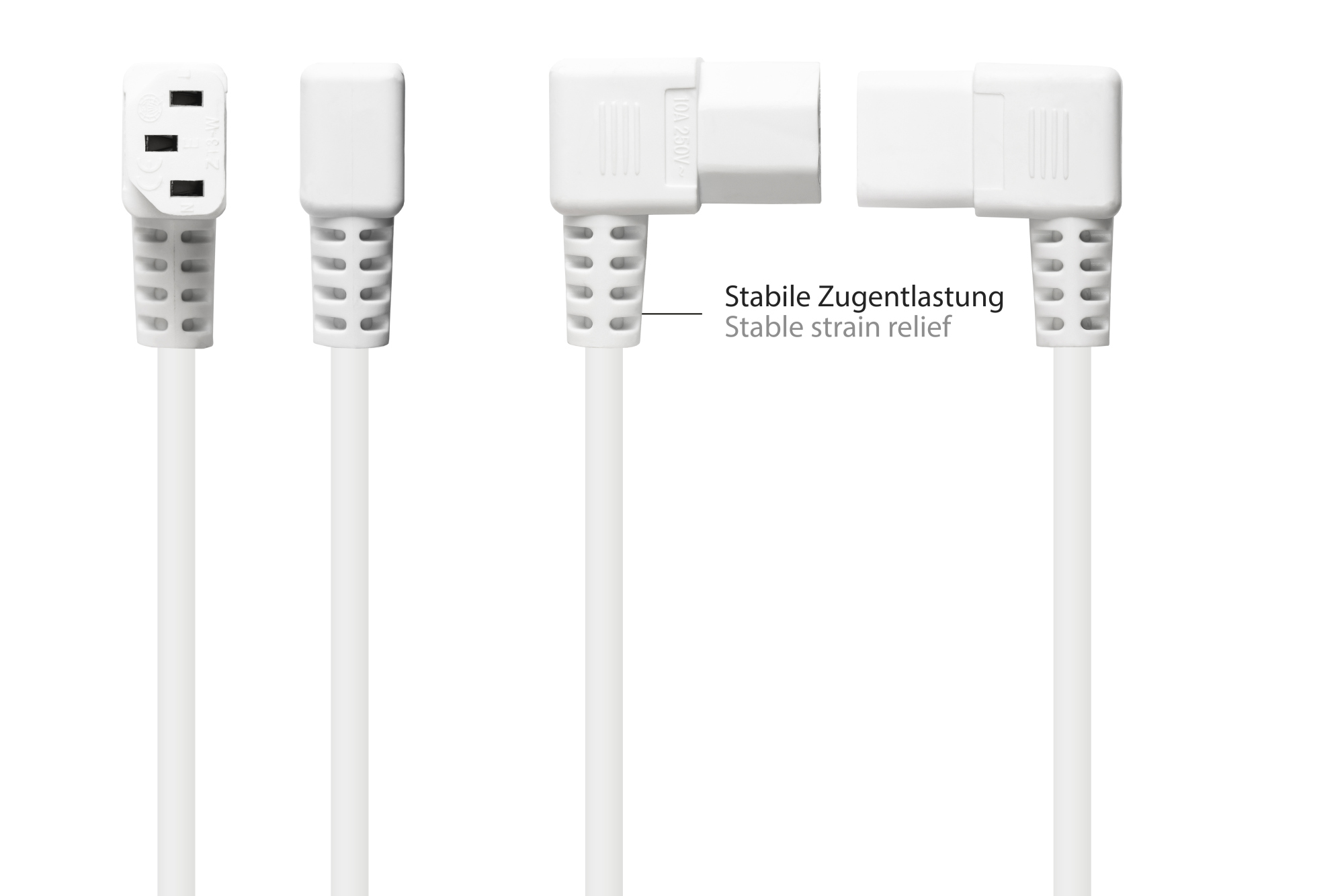 Netzkabel Schutzkontakt-Stecker Typ E+F (CEE 7/7, gewinkelt) an C13 (rechts gewinkelt), weiß, 1,00 mm², 3 m, Good Connections®