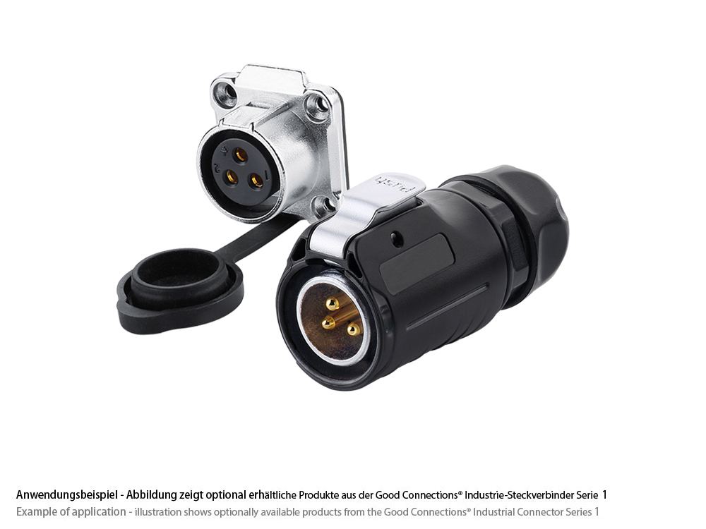 Industrie-Steckverbinder S1 - Power (3-Pin) Durchführungskupplung mit Flansch, Lötanschluss, Metall, M20, IP65/67, Good Connections®