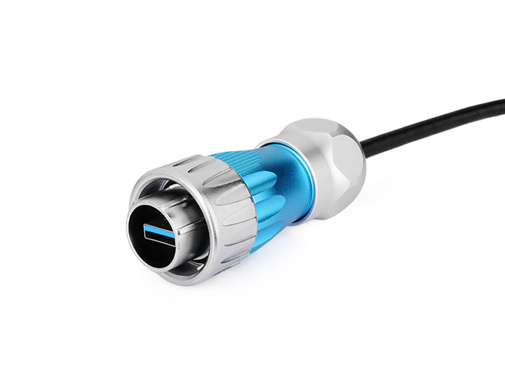 Industrie-Steckverbinder S3 - USB 3.0 Kabel, Stecker A mit Kabelverschraubung an Stecker A, Metall, M24, Bajonett, IP65/67, 0,5m, Good Connections®
