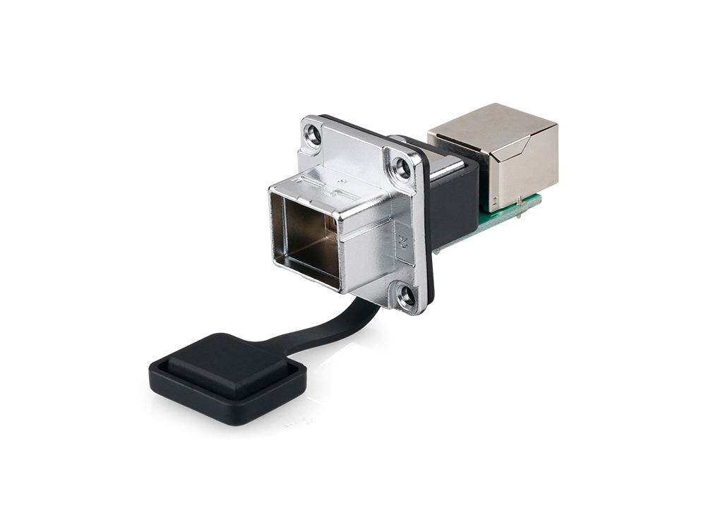 Industrie-Steckverbinder S6 - RJ45 Durchführungskupplung mit PCB-Platine / Leiterplatte, RJ45 Buchse beidseitig, Metall, Good Connections®