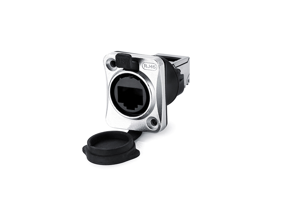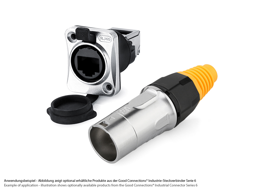 Industrie-Steckverbinder S6 - RJ45 Durchführungskupplung mit Klick Arretierung, RJ45 Buchse beidseitig, oben gewinkelt, Metall, M24, Good Connections®