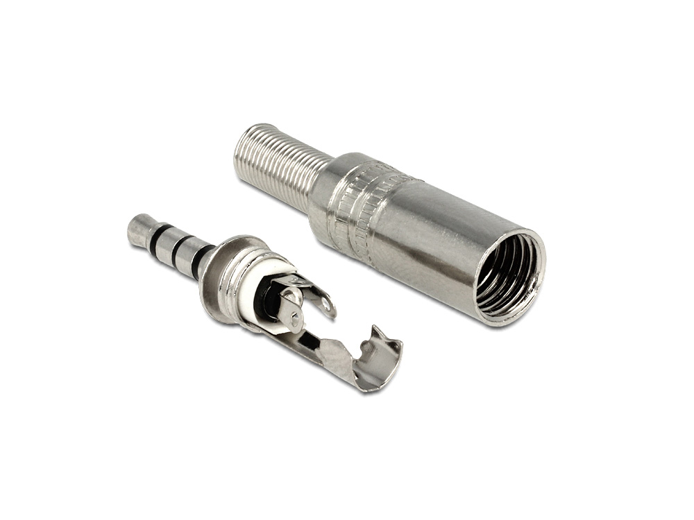 Stereo Klinkenstecker 3,5mm 4 Pin mit Knickschutz, silber, Delock® [65546]