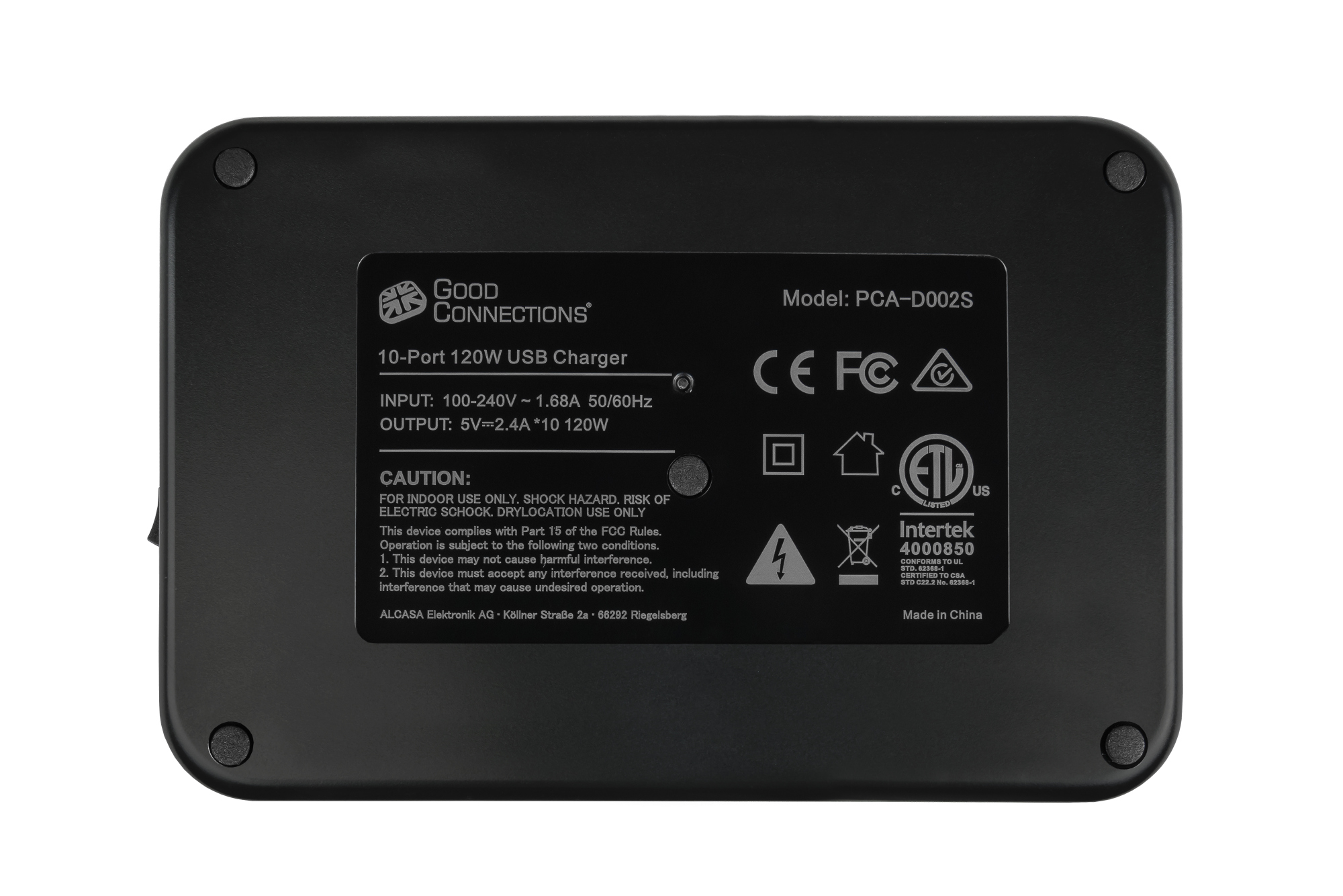 Die Good Connections® USB-Schnellladestation ist ein 120W Netzteil für Smartphones, Tablets, iPad und Zubehör. Sie verbindet kompaktes Design mit effizienter und leistungsstarker Ladetechnik. Machen sie sich keine Gedanken mehr, ob Sie das passende Ladegerät dabeihaben. Mit der leichten, universell und für mehrere Geräte gleichzeitig einsetzbaren USB-Schnellladestation können Sie bis zu zehn herkömmliche Netzteile durch eine einzelne Ladestation ersetzen.