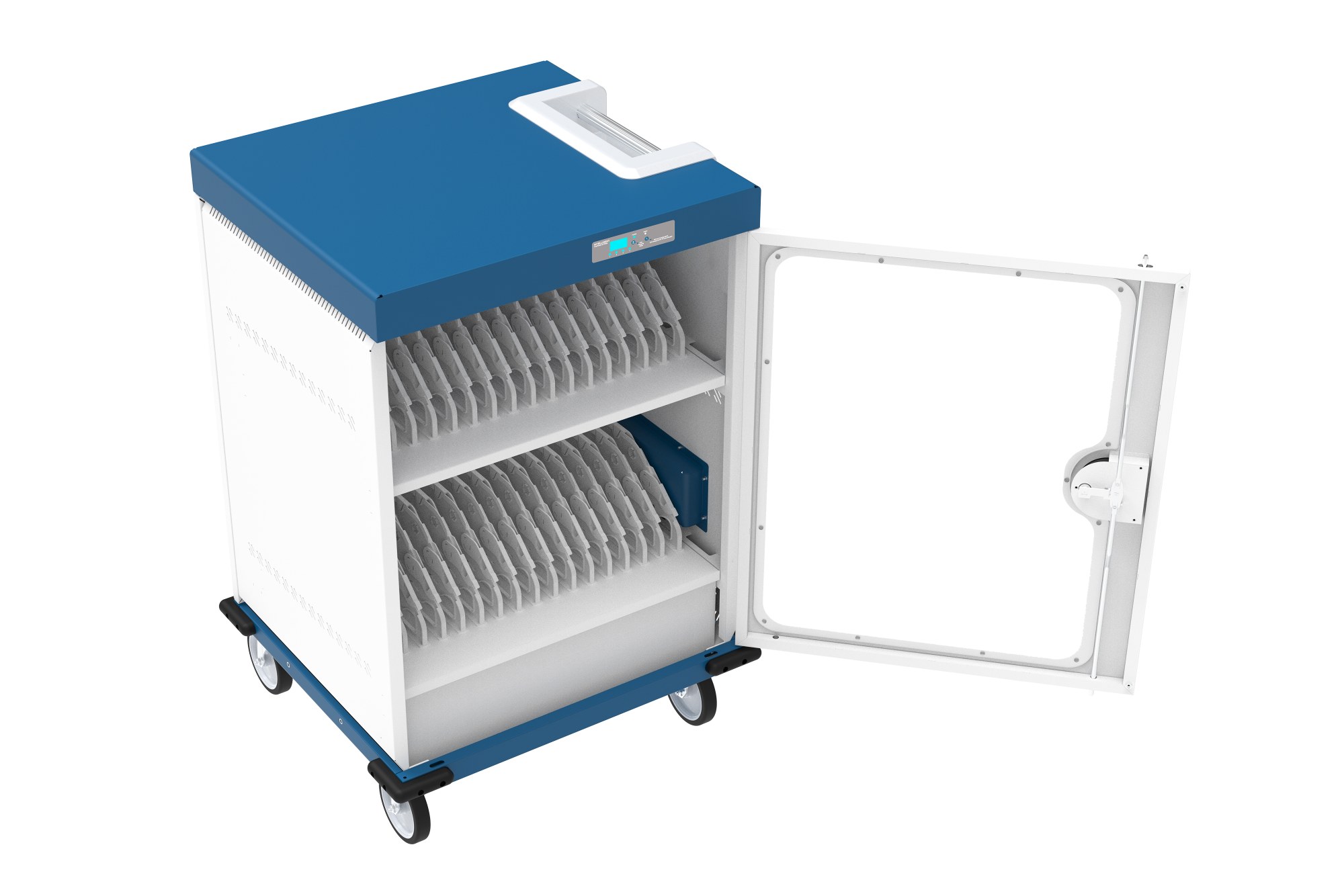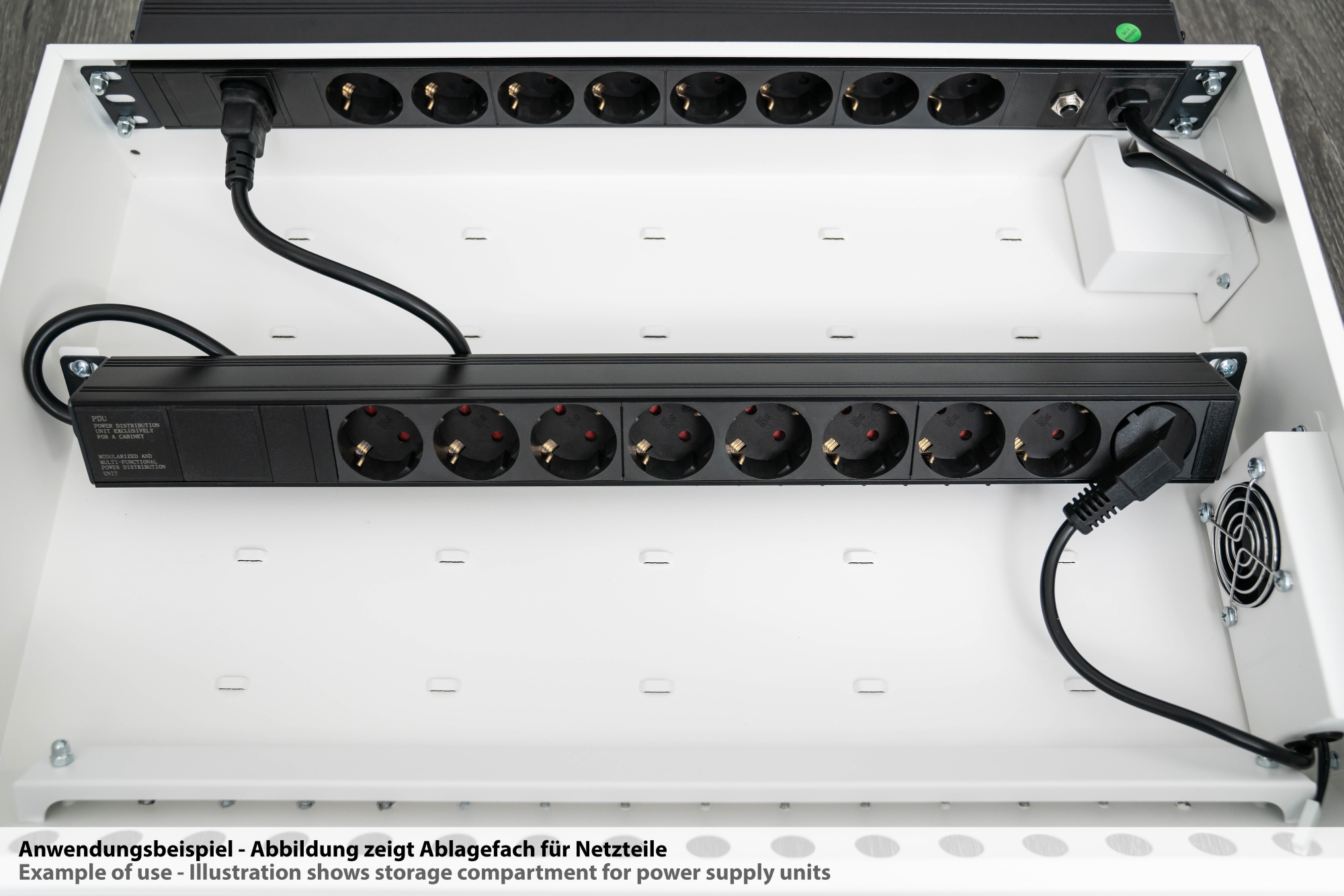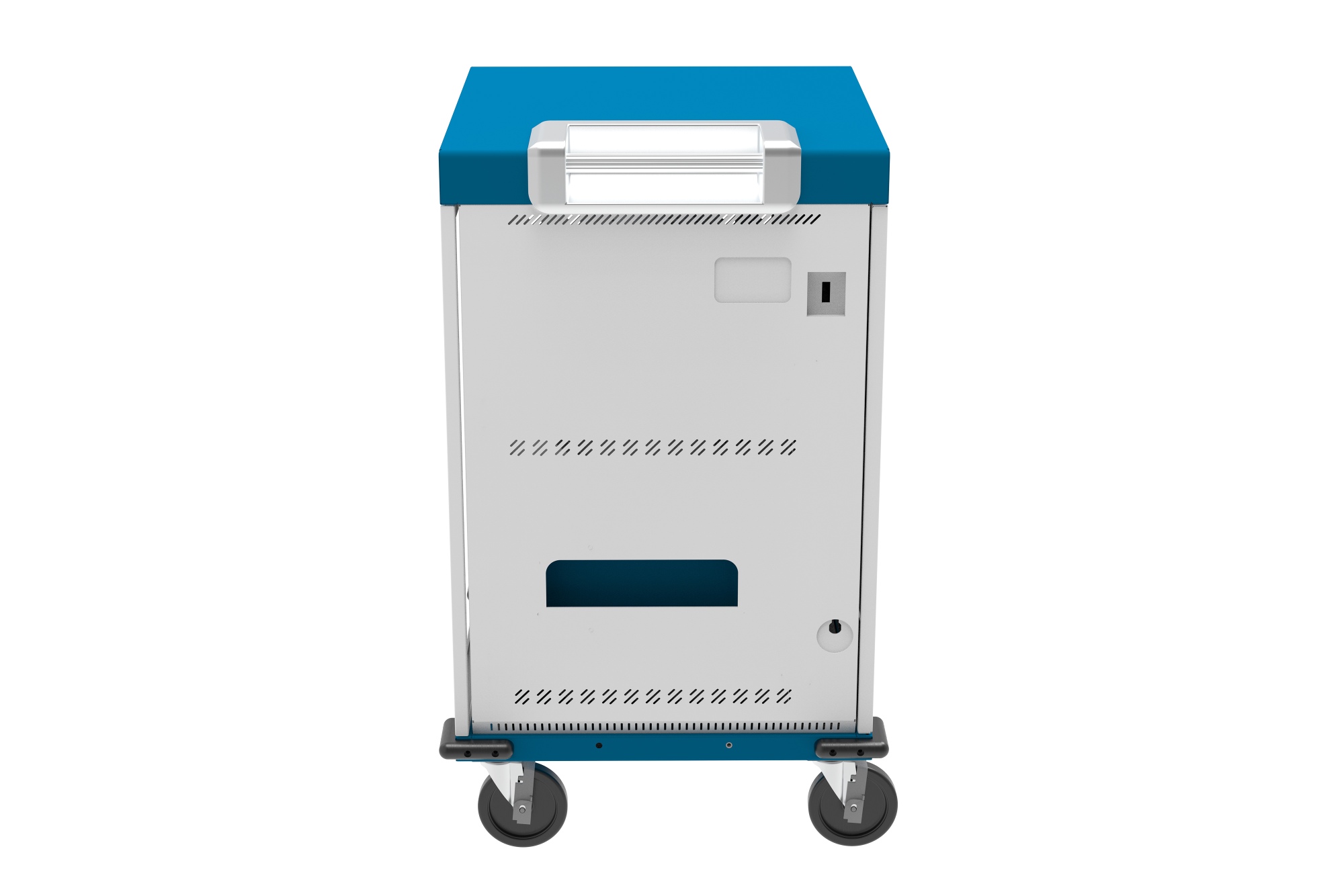 Zum Schutz der Geräte ist der Ladewagen mit zwei geräuscharmen Lüftern ausgestattet. Zudem ist das Gehäuse perforiert, sodass warme Luft effektiv nach außen geführt werden kann.