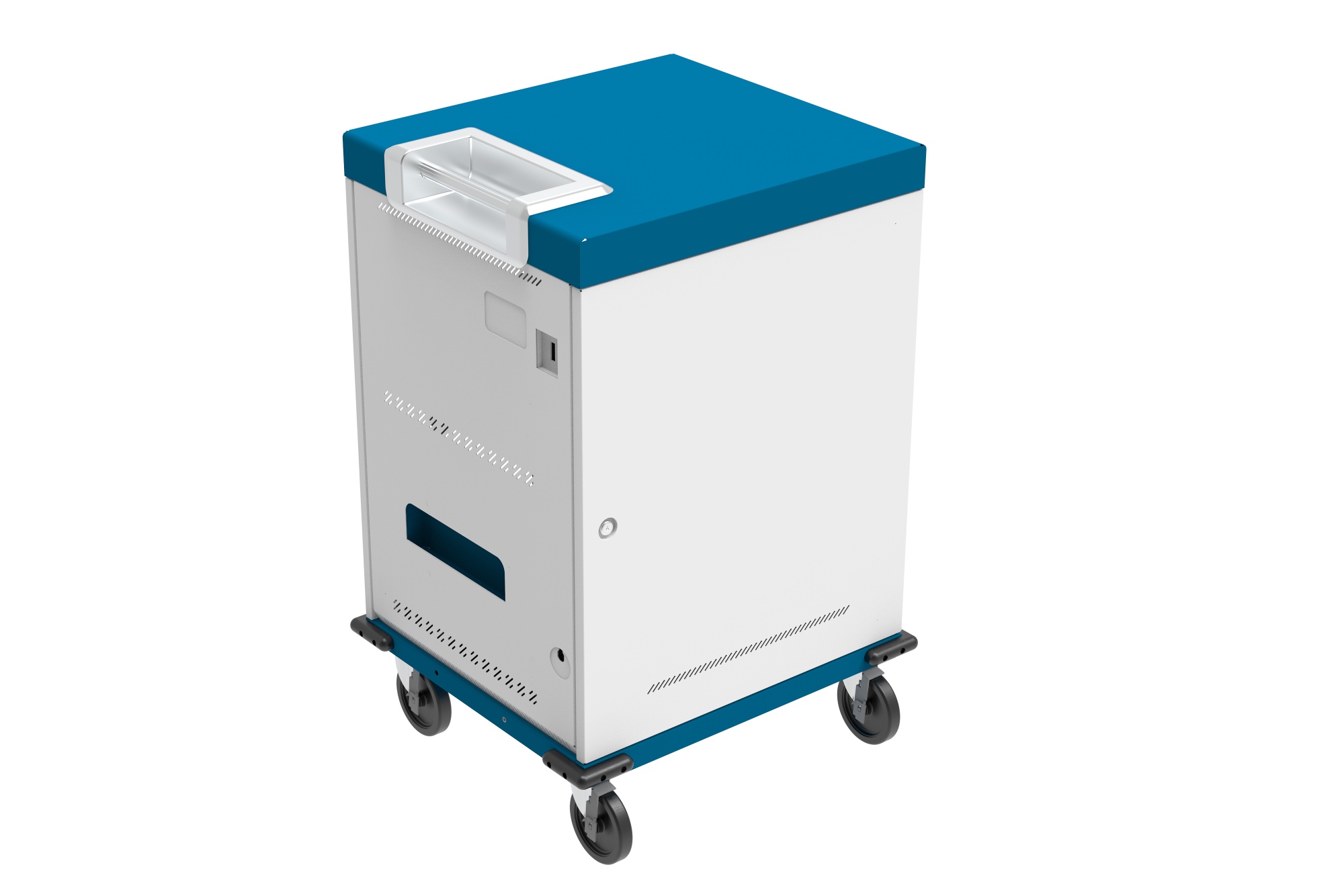 Good Connections® GEMMA N32 Notebook-Ladewagen für 32 Geräte, Schutzkontaktbuchsen, weiß/blau