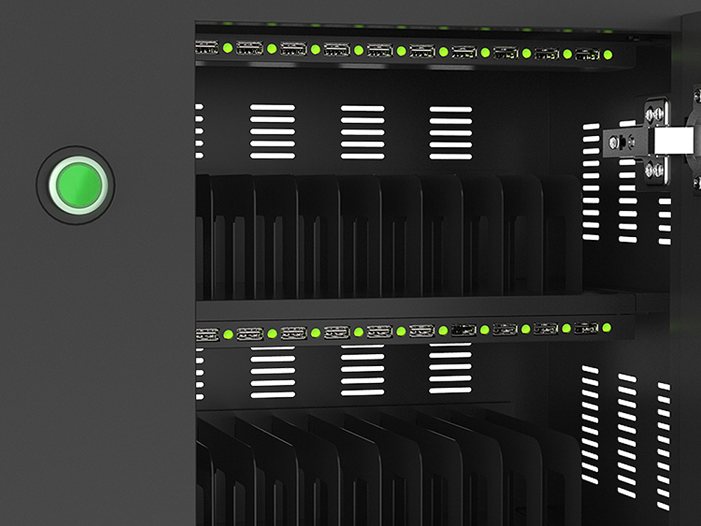 Zum Schutz der Geräte ist der Ladewagen mit einem permanent laufenden, leistungsstarken Lüfter ausgestattet.