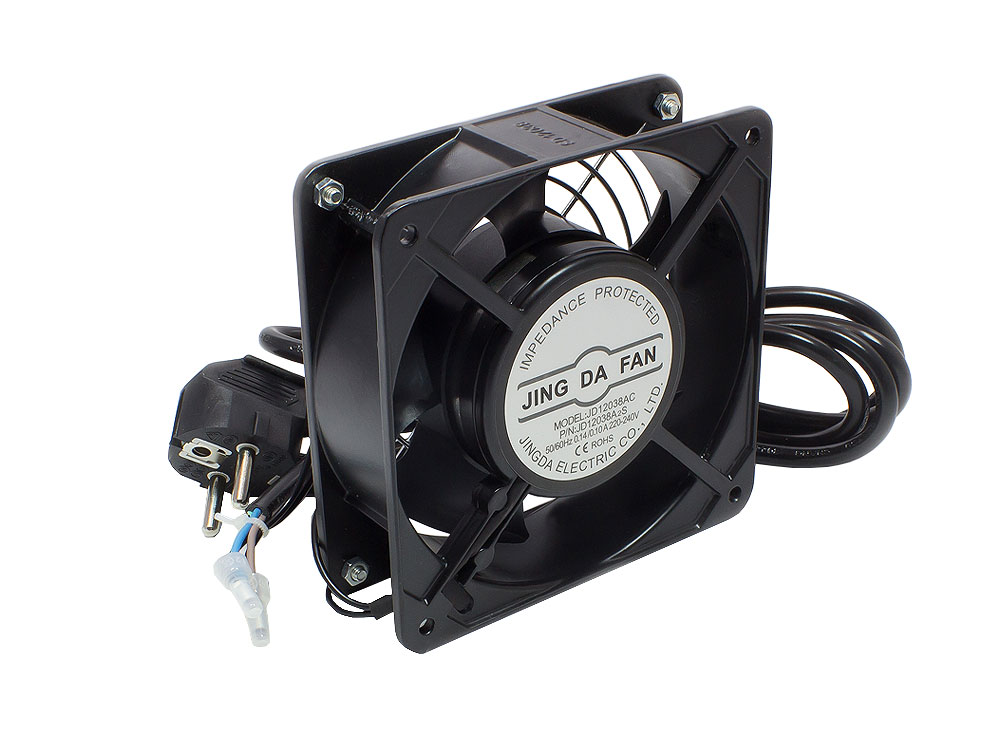 Einbaulüfter 120x120x38 mm, Metallausführung, inkl. Lüftergitter und 1,8m Schutzkontakt-Anschlusskabel