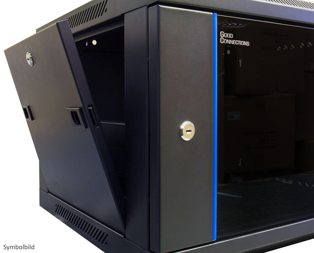 Das 19" Netzwerk-Wandgehäuse von Good Connections eignet sich dank schneller Montage und stabiler Stahlkonstruktion ideal für alle gängigen Anwendungen im EDV- und Telekommunikationsbereich. Durch die geringe Tiefe von 450 mm wird eine platzsparende Installation ermöglicht. Das bereits vormontiert gelieferte Wandgehäuse besteht aus einem Zentralteil mit einer abschließbaren Sichttür und zwei abschließbaren Seitenteilen. Einen optimalen Zugang hinter die eingebauten Komponenten erhält man durch die abnehmbaren Seitenwände. Für das 19" Wandgehäuse ist ein breites Spektrum an Zubehör erhältlich.