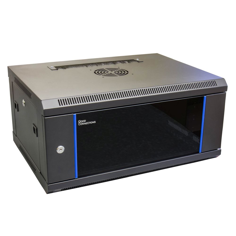 19" Wandgehäuse, 4HE, tiefschwarz (RAL9005) 600x450 mm, fertig montiert, Good Connections®