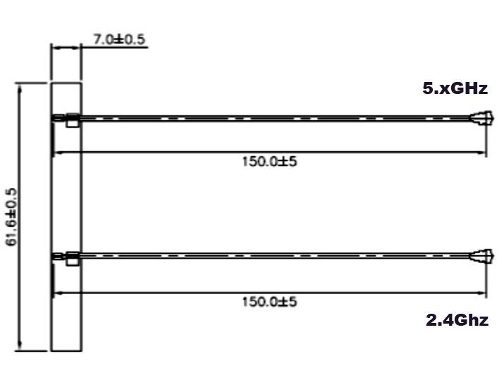 Antenne Doppel WLAN MHF/U.FL-LP-068 kompatibler Stecker 802.11 ac/a/h/b/g/n 5 dBi 2x150 mm PCB intern, Delock® [88983]