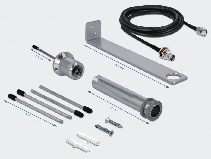 LPWAN 868 MHz Antenne TNC Buchse 3 dBi omnidirektional starr mit Anschlusskabel RG-58 C/U 3 m Wandmontage outdoor silber, Delock® [12564]