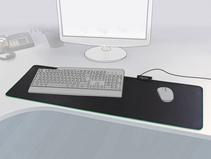 USB Mauspad 920 x 303 x 3 mm mit RGB Beleuchtung, Delock® [12555]