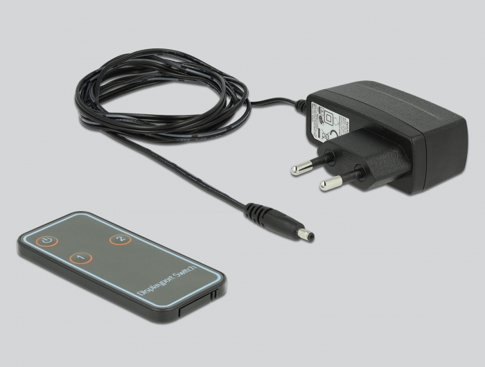Mit der Taste am Gerät oder der Fernbedienung kann zwischen den DisplayPort Geräten umgeschaltet werden. Der Ausgang ist Dual Mode fähig (DP++), so kann alternativ auch ein HDMI oder DVI Monitor mit einem entsprechenden Adapter angeschlossen werden.