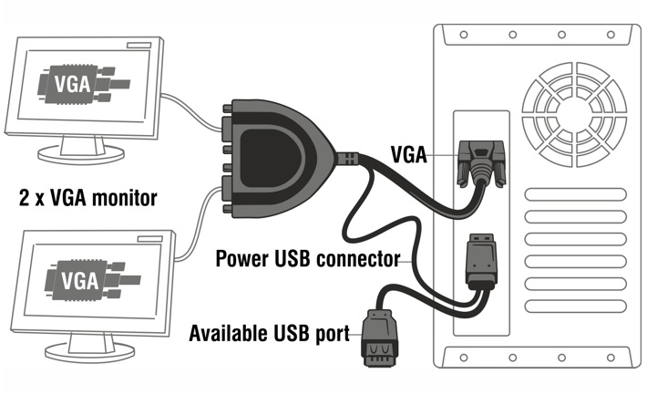 2 Port VGA Data Splitter 450 MHz, Delock ® [61968]