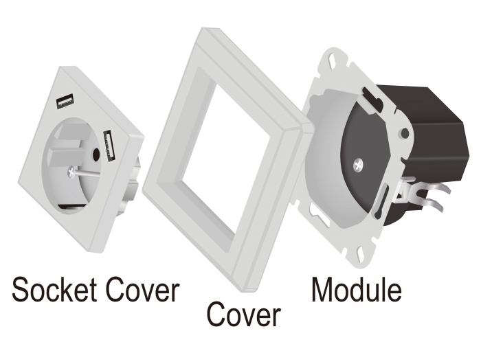 Einbausteckdose mit 2 x USB Typ-A Ladeport 2,8 A , Delock® [11473]