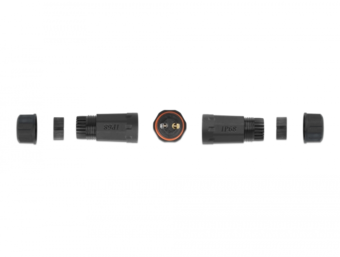 Kabelverbinder für Außenbereich 2 Pin, IP68 wasserdicht, schraubbar, Kabeldurchmesser 4,5 - 7,5 mm schwarz, Delock® [86912]