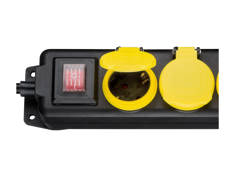 Steckdosenleiste 5-fach, mit beleuchtetem Ein-/Aus- Schalter, für den Außenbereich geeignet, schwarz / gelb, 3m