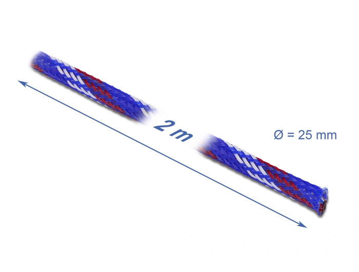 Geflechtschlauch dehnbar 2 m x 25 mm blau-rot-weiß, Delock® [20751]