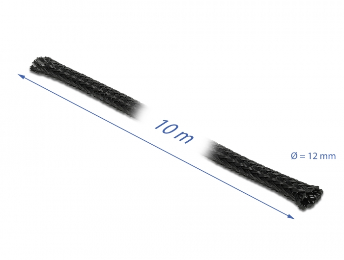Geflechtschlauch dehnbar 10 m x 12 mm schwarz, Delock® [18902]